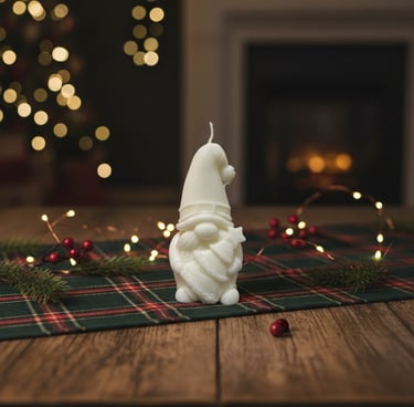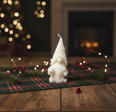 1 Vela decorativa de Gnomo sin fragancia de 10 x 4.8 cm. Peso total aprox. 65 g